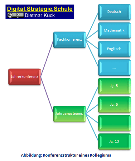Die Bausteine sind Gelingensbedingungen für eine systemische Integration digitaler Medien in Schulen. Damit diese auch systematisch im Unterricht verankert werden und im Sinne aktiver Teamentwicklung (vgl. Rolffs 2013) wirken, ist hierzu noch die Schlüsselrolle der Fachschaft und der Jahrgangsteams erforderlich: